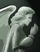 "The image of an imposing memorial. The rain-blurred name is difficult to read. "